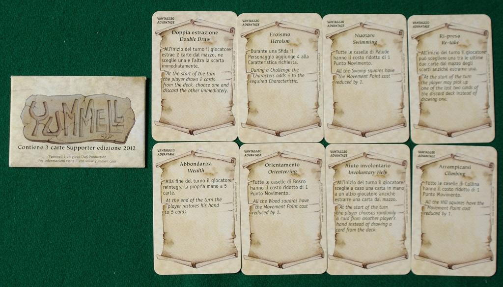YUMMELL è un gioco di corse in un mondo Fantasy dove i giocatori impersonano uno degli 8 personaggi inclusi nella scatola e hanno a disposizione una plancia che descrive le caratteristiche del loro personaggio: Forza, Simpatia, Agilità, Magia e un’abilità speciale diversa per ciascuno.